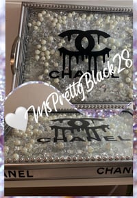 Display your favorite perfumes, beauty essentials and much more with this designer-inspired Vanity. The ideal size for displaying on your dresser or desk (11x17). Inside is filled with diamonds and pearls and trimmed with a designer-inspired logo giving it the ultimate Glam look. ** ALL Crafting products are made-to-order; designs/variations might be slightly different than pictured**Refunds are not available for personalized products **